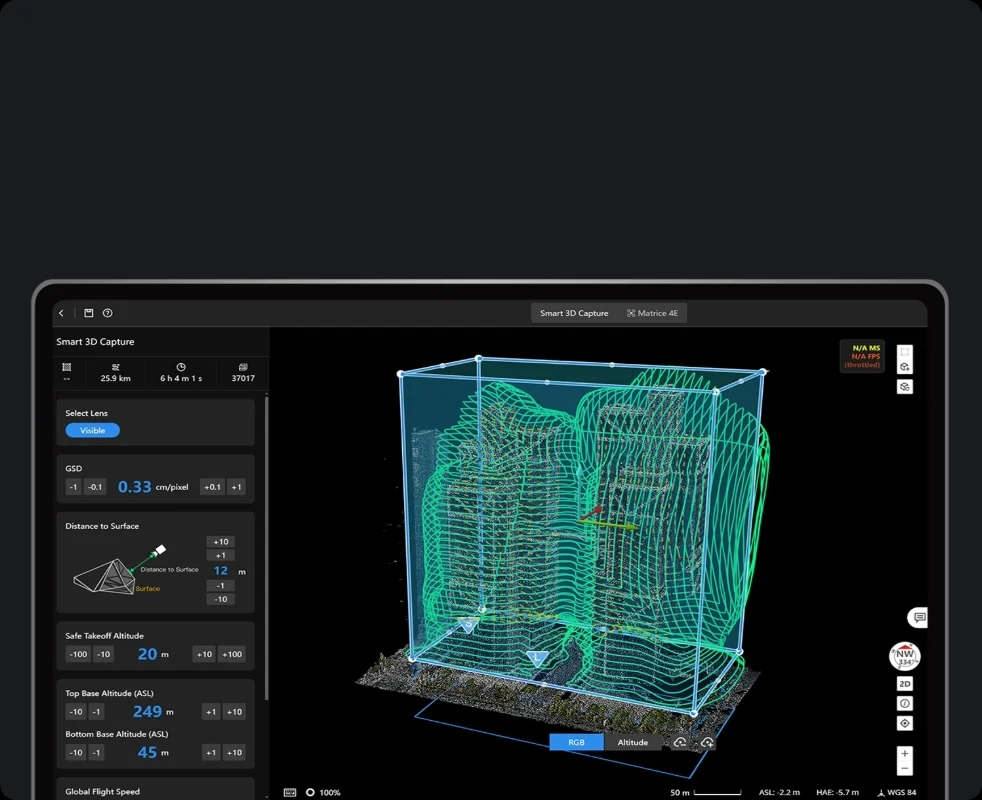 Cloud Modeling: Generate high-precision 2D/3D models and point clouds, with support for real-time 2D reconstruction during flight when paired with compatible DJI drones.