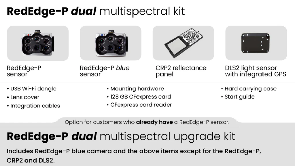 - The Micasense RedEdge-P DUAL has 10 multispectral bands, each with a resolution of 1.6 megapixels.
