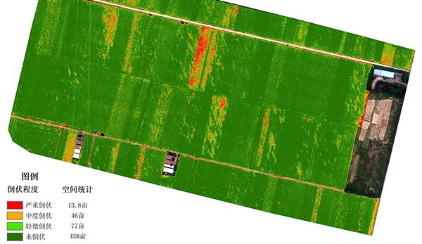 According to the difference of canopy spectrum and leaf surface texture, a crop lodging evaluation model was constructed, and the lodging degree and spatial distribution of different lodging degrees were quantitatively described by combining with the statistical data of ground sampling points, which provided data support for disaster assessment and crop yield estimation.