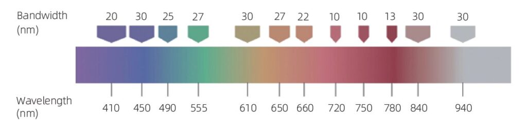 MS600 Dual is a supplement to MS600 V2 multi-spectral camera in the near-infrared band. When cascaded with MS600 V2, more vegetation canopy information can be mined, and more spectral factors can be constructed to im-prove the accuracy of canopy ph-ysiological parameters inversion in pan-vegetation scenes such as crops, forests and grasses.