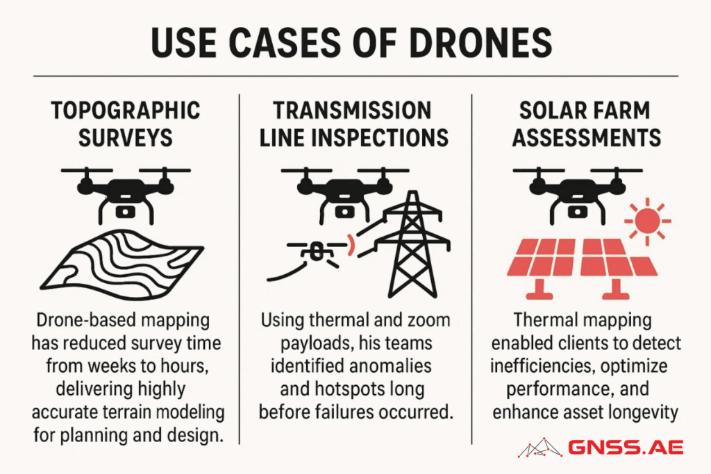 - Transmission Line Inspections: Using thermal and zoom payloads, his teams identified anomalies and hotspots long before failures occurred.