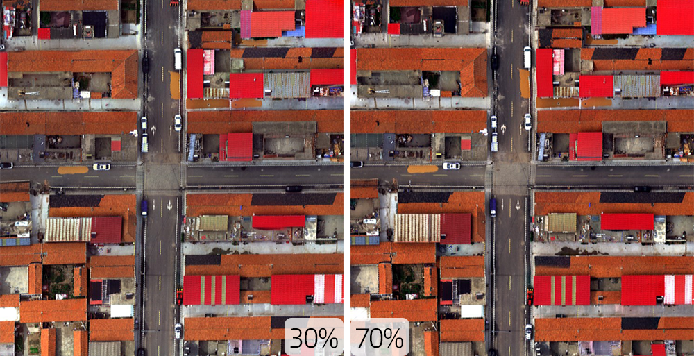 The lateral overlap rate of visible light aerial photography is generally between 55% and 60%, while the lateral overlap rate of multispectral remote sensing is generally not less than 70%. Why can the HSP0410 hyperspectral remote sensing achieve a lateral overlap rate as low as 30%? On the one hand, push-broom hyperspectral imaging is frame-by-frame, and each frame conforms to the central projection imaging geometric model. There is a certain geometric relationship between each frame, and the image strips are relatively longer, which is more conducive to the image matching algorithm to measure corresponding points between routes. Therefore, the overlap rate between routes can be minimized during actual flight. On the other hand, thanks to high-precision ground pointing and stable push-broom, the original data has less misalignment and distortion, and a lateral overlap rate of 30% can meet the requirements for establishing geometric constraint relationships between adjacent frame images. Compared with the high-overlap rate acquisition mode of 70%, the data acquisition efficiency is more than doubled within the same time.