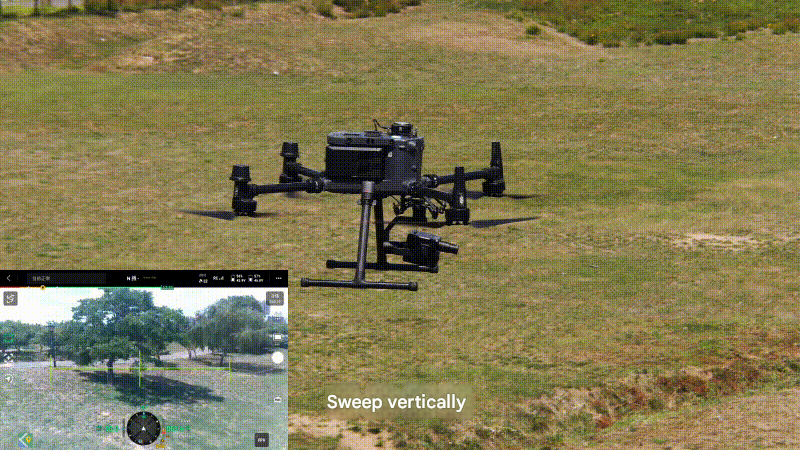 (1) The pan-sweep mode supports pan-sweep in any range from -20° to +110° (0° vertical to the ground, positive in the upward direction and negative in the downward direction), and can collect various targets such as inclined and vertical targets. It is particularly suitable for scenarios such as tree vertical profile surveys, cultural relics protection and restoration, and building facade monitoring.
