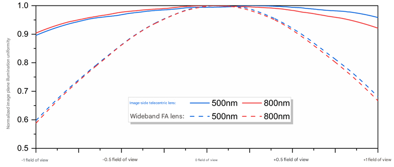 Image plane illumination uniformity directly affects the dynamic range of remote sensing instruments. Commonly used wide-band FA lenses generally have an illumination uniformity of around 0.6 across the entire field of view, and the pupil does not fully match the spectrometer. The HSP0410 uses a self-developed image-space telecentric lens with an illumination uniformity better than 0.9 across the entire field of view, which fully matches the spectrometer and increases the dynamic range of the entire instrument by more than 1.5 times.