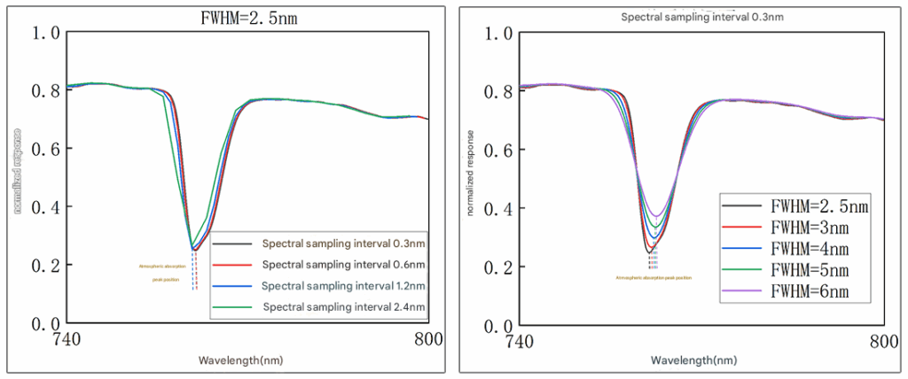 Bonus: Accurately capturing atmospheric absorption peaks is also an effective way to test a hyperspectral camera’s spectral resolution and measurement accuracy. This is because as the FWHM or spectral sampling interval increases, the accuracy of the atmospheric absorption peak shape and position measurements also deteriorates.